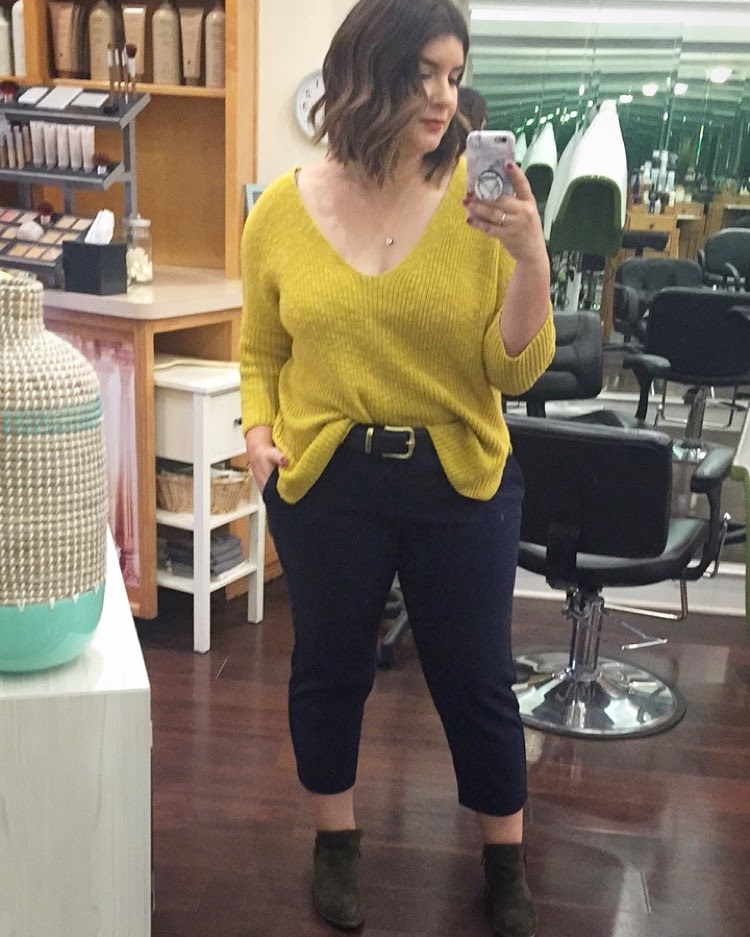 Next, find the gaps in your wardrobe. An obvious gap in my wardrobe was warmer cardigans. I had plenty of lightweight ones that are great for late spring and air conditioned buildings. But I didn't really have any other warm and cozy cardigans (except for this orange one that I'm freaking in love with). I especially need a black one to keep at work. I'm thinking of picking up a basic one from H&M. I also found a very over-sized and very cozy cashmere cardigan at a thrift store. The other gap is in my shoes. I also don't own a pair of black ankle booties. But I do have other booties so I might wait till the new year to purchase these.